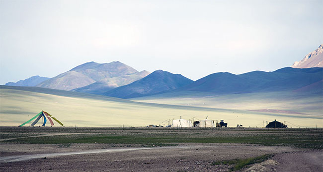 家鄉(xiāng)的9月,酷暑還沒消退,而當(dāng)我從拉薩乘車到達(dá)措勤境內(nèi)時,這里卻下起了鵝毛般的大雪。車?yán)锼腥硕急凰緳C(jī)喊下了車,在雪地里推這不中用的大“鐵皮”。初次見到如此美妙的雪景,我挺激動,并沒因為糟糕的路況而苦悶。還好,雪并沒有下太久,汽車又奔馳在廣闊草原上,前方是望不盡的天際和地平線到達(dá)改則縣城,如同到達(dá)歐洲中世紀(jì)的小城。土墻,矮窗,牧民家的煙囪和那裊裊的青煙構(gòu)就著荒原中詩般的生活氣息。“大漠孤煙直,長河落日圓”的邊塞景象真實地展現(xiàn)在眼前。當(dāng)然,改則縣長河是沒有的,在我印象里最深刻的是這三種事物:太陽、烏鴉和荒原。太陽永不懈怠,每天都從天邊升起然后落下;成群烏鴉粗劣嘶啞的叫聲給了荒原更加凄切的靜謐——呱、呱;而荒原,是太陽和烏鴉永恒的載體,不離不棄。