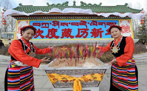 在西藏,藏歷新年是眾多節(jié)日中最隆重、最富民俗氣息的節(jié)日,藏語(yǔ)稱為“洛薩”。西藏各地過(guò)新年的時(shí)間不盡相同,包括拉薩在內(nèi)的西藏大部分地區(qū)以藏歷正月初一作為新年。在拉薩,藏歷新年的準(zhǔn)備工作從藏歷十二月初就開(kāi)始,而慶?;顒?dòng)則是從藏歷十二月二十九日開(kāi)始,晚上一般全家人團(tuán)聚,一起吃“古突”辭舊迎新。藏歷正月初一,女人們要到河邊、井邊或水龍頭下“搶”吉祥之水,男人們則早起煨桑。初二,開(kāi)始走親訪友活動(dòng)。初三,年輕人會(huì)登上山頂插五彩經(jīng)幡,有的農(nóng)牧區(qū)還將舉行新馬馱鞍儀式及賽馬、拔河、投擲等活動(dòng)。藏歷新年的歡樂(lè)活動(dòng)將一直持續(xù)到正月十五。這期間來(lái)西藏的朋友,如果能到藏族同胞家里一起過(guò)“古突”之夜,參加“驅(qū)鬼儀式”,就能真正感受到藏歷新年的傳統(tǒng)年俗了。