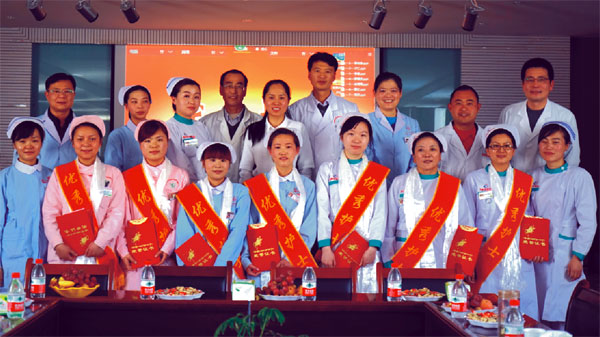 接下來(lái)對(duì)在這一年里表現(xiàn)優(yōu)秀的7名護(hù)士進(jìn)行了表彰,她們分別是李尚春、次仁、李敏、徐秀娟、羅國(guó)波、曹紅、龍芬。院領(lǐng)導(dǎo)為他們頒發(fā)了榮譽(yù)證書(shū)、獎(jiǎng)金,給他們敬獻(xiàn)哈達(dá)并合影留念。獲獎(jiǎng)護(hù)士代表李尚春、羅國(guó)波、曹紅分別進(jìn)行了發(fā)言。最后由李君副院長(zhǎng)對(duì)大會(huì)作總結(jié),在肯定我們工作的同時(shí)也提出了新的要求。希望在未來(lái)的時(shí)間里我們?nèi)横t(yī)護(hù)人員以更高層次的服務(wù)水平嬴得患者的滿意。為醫(yī)院改革發(fā)展作出更大的貢獻(xiàn)。