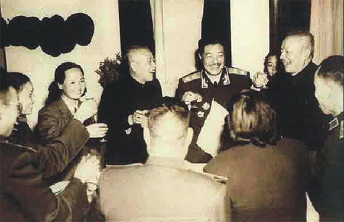賀龍?jiān)獛浽诔啥肌W钭笫抢钗那?,中間的是賀炳炎,右邊是郭林祥。