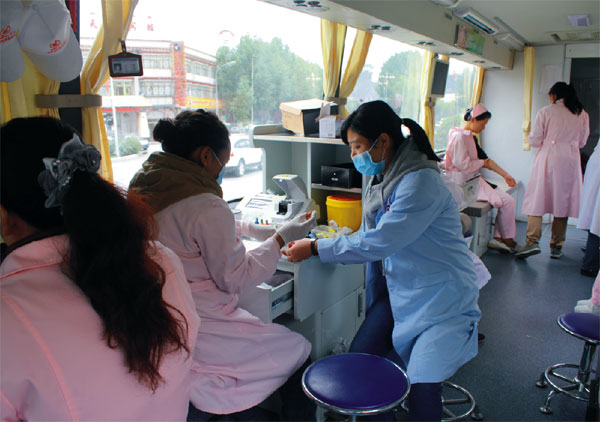 前來參加此次獻(xiàn)血活動的人員來自西藏阜康醫(yī)藥發(fā)展有限公司下屬的各醫(yī)院、藥房。有些甚至跟同事?lián)Q了班過來獻(xiàn)血。同志們在門診大廳領(lǐng)表單,填好表之后到獻(xiàn)血車前排隊等待獻(xiàn)血。依次序登上采血車,從驗血型到采血人員處獻(xiàn)血?,F(xiàn)場氣氛熱烈,秩序井然。受到獻(xiàn)血現(xiàn)場氣氛的感染,住院家屬以及附近警務(wù)站的警察也加入到獻(xiàn)血隊伍中來。