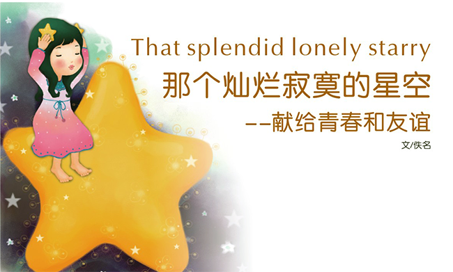 等濃霧散去后,就可以看到最美麗的星空了。”我們是否也能像他們一樣,跳進那滿天的星海里,頭枕著星星,卻看見燦爛的陽光。我不知道,有陰影的地方,是否必定有光。仰望星空,我還是愿意相信,你或者其他人,曾經(jīng),正在從世界的某個地方向我走來。