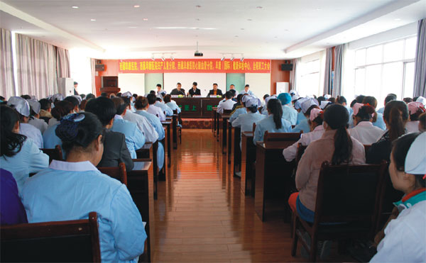 2015年度首次全院職工大會在西藏阜康醫(yī)院婦產(chǎn)兒童分院四樓會議室召開。本次會議的主要議題有:一、王斌董事長作2015年度工作安排;二、王斌董事長向陳彬總經(jīng)理頒發(fā)“阜康醫(yī)藥發(fā)展有限公司總經(jīng)理” 聘書;三、陳彬總經(jīng)理述職;四、嘎布院長作總結(jié)。