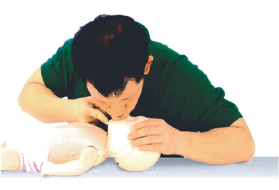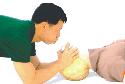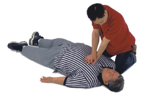 搶救步驟:對(duì)于非專業(yè)人員,首先應(yīng)該將患者仰面置于硬地或硬木板上,頭偏向一側(cè),找準(zhǔn)胸外心臟按壓的部位——簡(jiǎn)單的方法即患者兩乳頭連線與胸骨交叉點(diǎn),找準(zhǔn)位置后立即按壓,并同時(shí)向周圍人員尋求幫助:撥打120;尋求能一起參與搶救者。