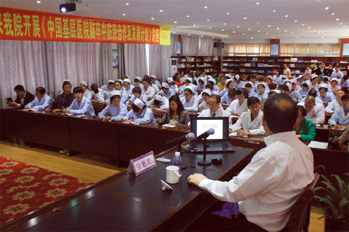 2015年8月24日,北京安貞醫(yī)院腦卒中中心主任、留美醫(yī)學(xué)博士、心血管外科教授、頸動(dòng)脈內(nèi)膜剝脫術(shù)(CEA)專家、中美腦中風(fēng)協(xié)助組中方組長(zhǎng)張勤奕先生不遠(yuǎn)萬(wàn)里來(lái)我院視查工作,并開(kāi)展了《中國(guó)基層醫(yī)院腦卒中防治合作及發(fā)展計(jì)劃》講座。