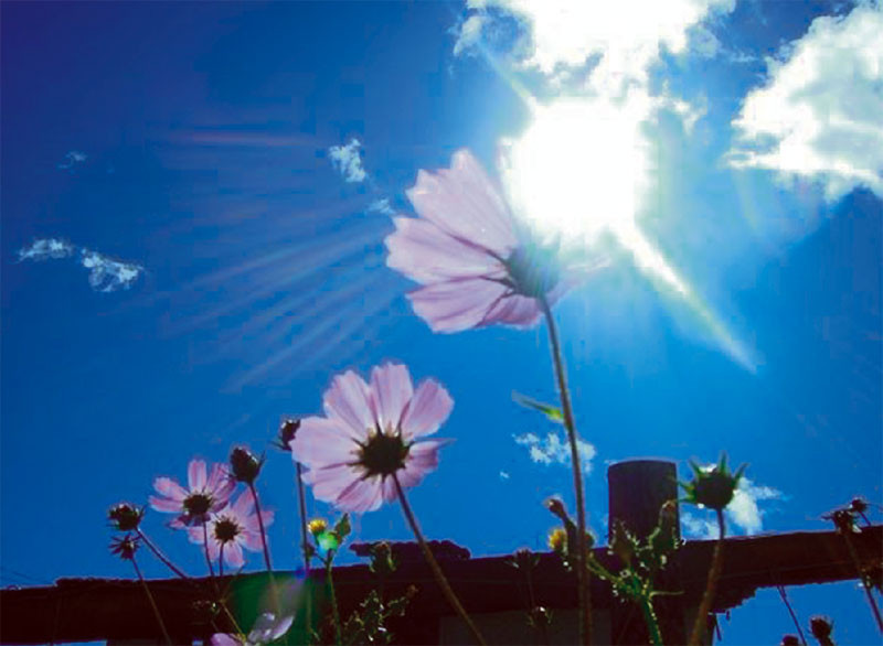 聽(tīng),有什么東西在升起,喚醒緊閉的烏云,拆開(kāi)太陽(yáng)的囚籠,讓陽(yáng)光撇下金色的利劍,刺破山間的孤寂,萬(wàn)縷陽(yáng)光下一群嬉鬧的孩子進(jìn)了眼睛,大一點(diǎn)的拿著課本,一邊快速地瞟上幾眼在口中念念有詞,一邊又關(guān)心地叮囑弟弟妹妹,小心腳下別走太快。小一點(diǎn)的小可愛(ài)們腳下生風(fēng),黑中透紅的臉上掛著野花般的笑容,左右搖擺,蹦蹦跳跳地沖下山坡,聽(tīng)著回響在山谷的銀鈴般的笑聲,感覺(jué)在扭曲、凌亂的廢墟上萌動(dòng)著期待破土的——希望。