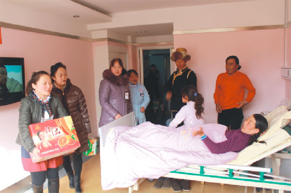由陳彬總經(jīng)理、敖德秀副院長、張治副院長、何靜院長助理帶隊的雙節(jié)慰問小組分別于2月6日集中慰問春節(jié)期間堅守崗位的專家、2月8日(大年初一)慰問醫(yī)院各科室、2月9日(藏歷初一)慰問不能出院與家人團聚的患者,院領(lǐng)導(dǎo)代表公司和王斌董事長為他們送去了節(jié)日的關(guān)懷。