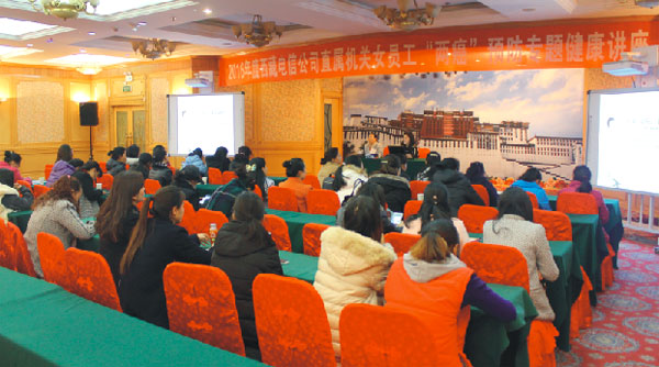2016年3月7日下午,在“三八婦女節(jié)”即將來臨之際,我院李君副院長受邀于西藏電信公司及中國郵政儲蓄銀行西藏自治區(qū)分行進(jìn)行女性健康知識、備孕二胎媽媽孕前檢查及“兩癌”篩查健康知識講座,并就女性“宮頸癌”、“乳腺癌”兩大癌癥預(yù)防篩查等健康知識作出詳細(xì)講解。受到了在場學(xué)員的一致好評。