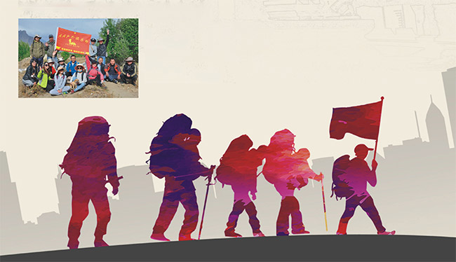 說起當初怎么想到發(fā)起這個徒步組織,阿杜一臉驕傲。我喜歡運動,和幾位志同道合者一商量,周末徒步吧。后來,加入的人越來越多,就建個徒步群,網(wǎng)上報名或打電話都行?;顒右话闶且惶欤形缁锸吃趺唇鉀Q?開始是自帶水果、點心,誰吃誰的,好像少些團隊意識。人多了,想起伙食AA制,我們背著鍋上山,隊友帶什么的都有,水果、糕點,葷的、素的,熟的、生的,干牛糞一燒,煮出一鍋大雜燴,又成了高原野炊。其實,只要愿意參加,不在乎你帶不帶吃的,因為我們有飯同吃。如今人人都能吃得飽而豐富,又不提倡多帶,盡量做到吃得干干凈凈,既輕松又節(jié)約還環(huán)保。
