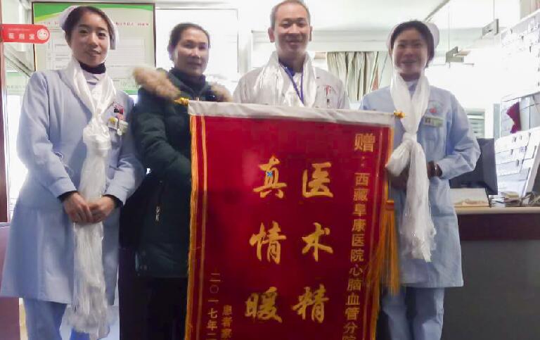2017年2月26日,患者巴桑(化名)委派家屬為阜康醫(yī)院心腦血管分院送去錦旗,以表達阜康醫(yī)護人員對他的精心醫(yī)治及照顧之情。